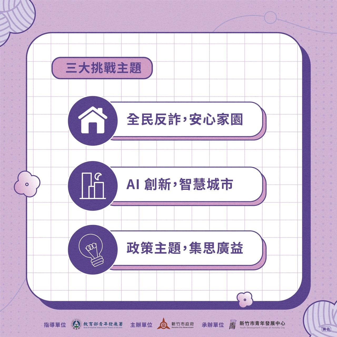 | 全民反詐,安心家園 | AI創新,智慧城市 | 政策主題,集思廣益 |