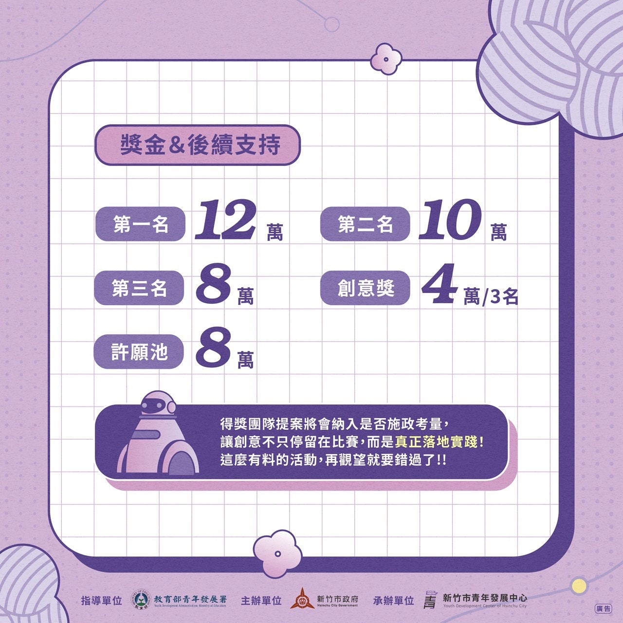 名額有限,快揪隊友一起挑戰,為新竹的未來解鎖更多可能!